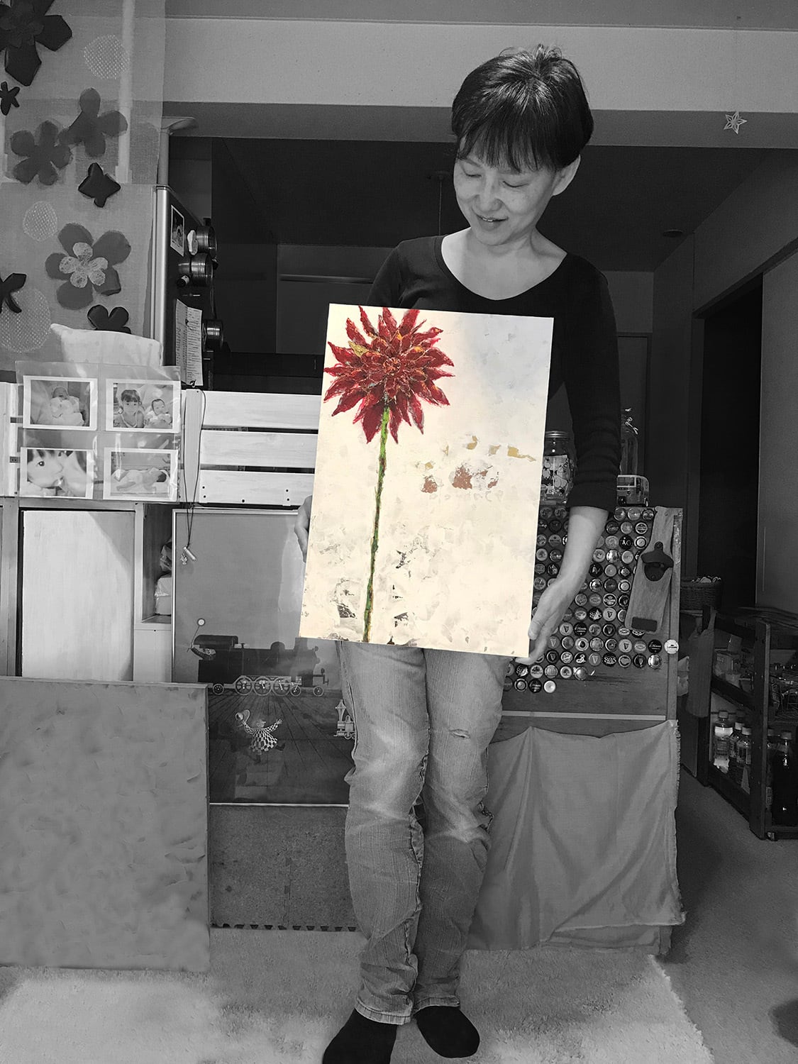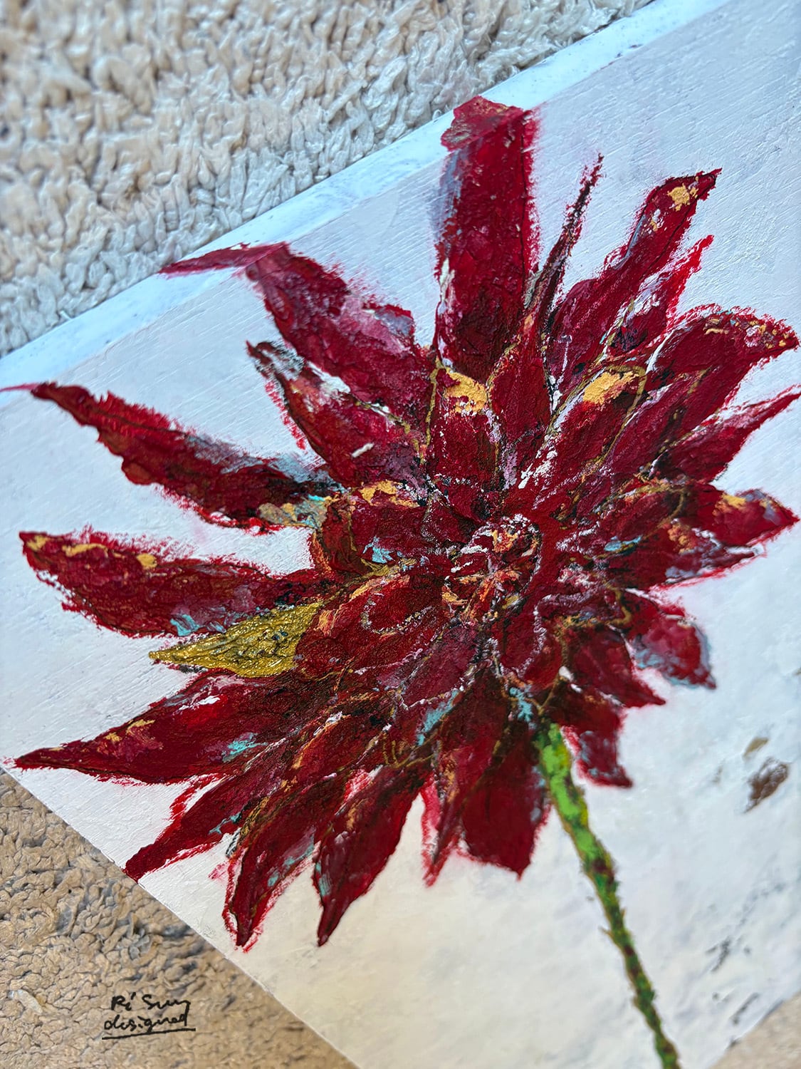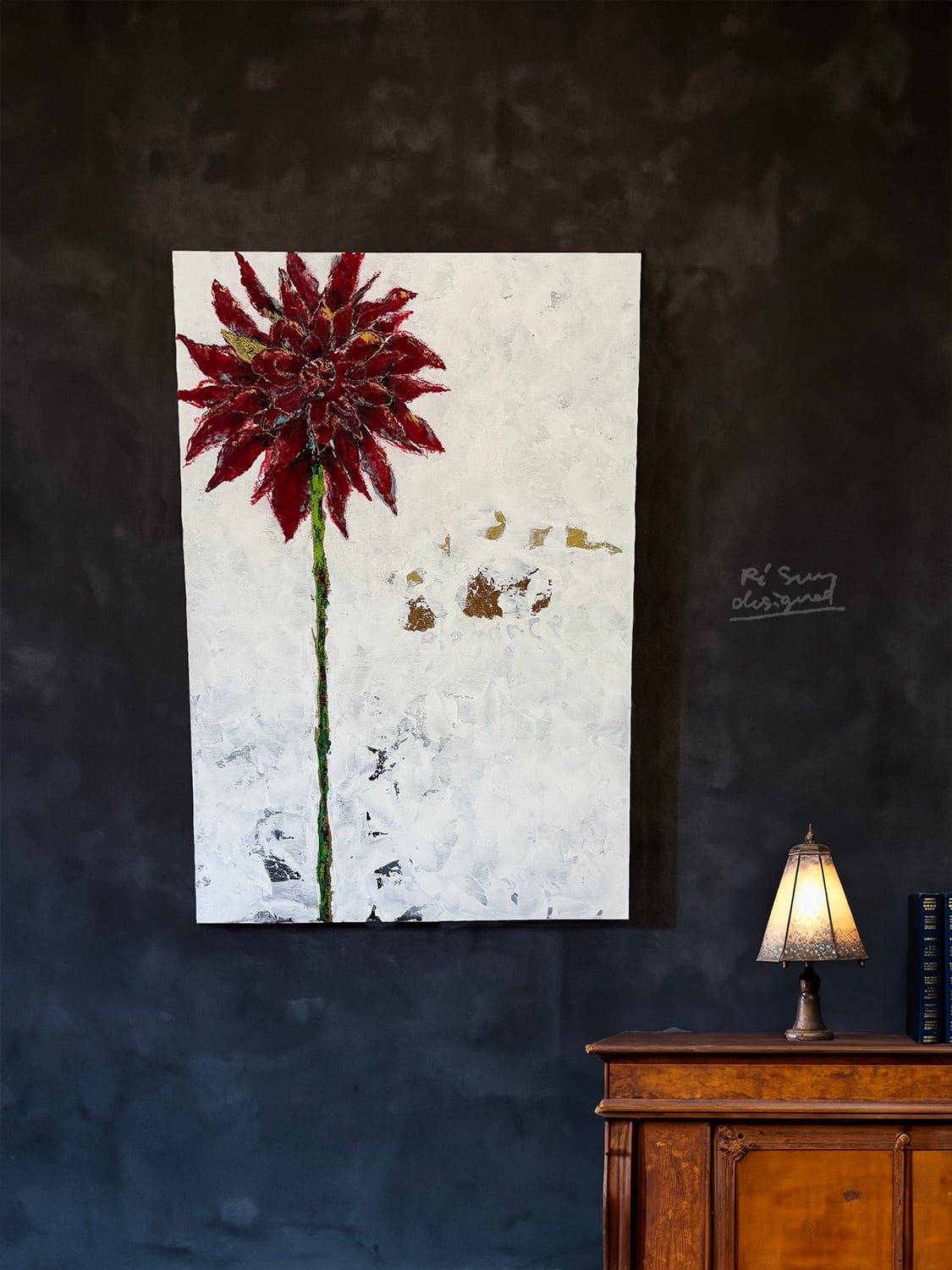 “黒蝶” という種類のダリアを描いた1点もの絵画。
